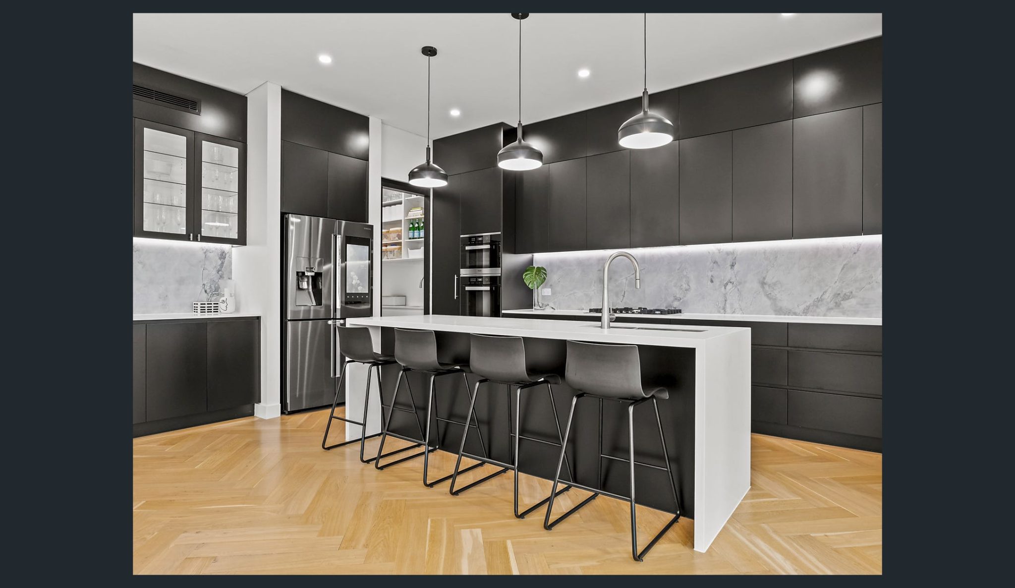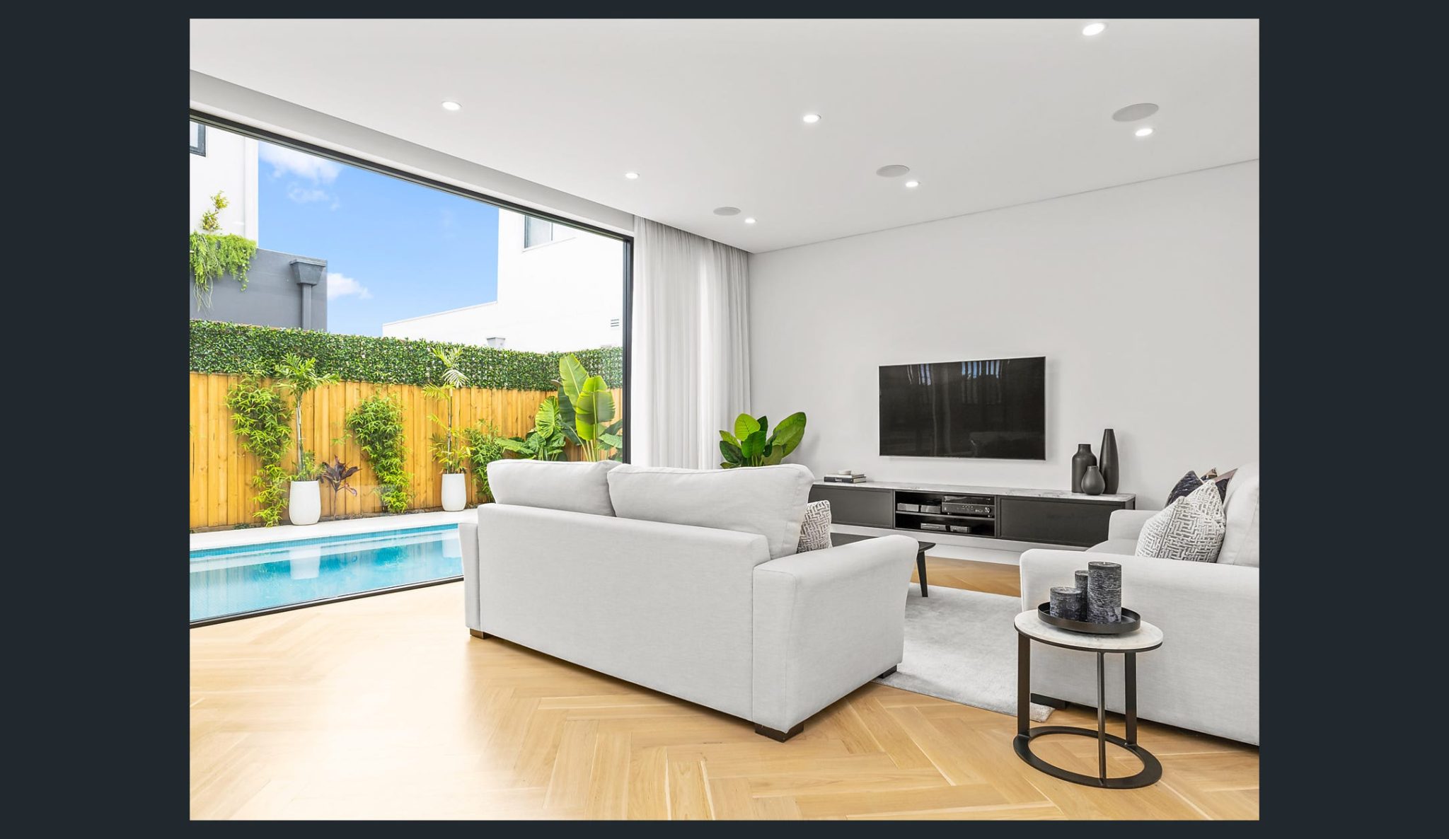 This well crafted home showcases sophisticated contemporary interiors, the finest finishes and bespoke architectural design. Perfectly situated on a corner block at the highest point of the street to cleverly capture Kogarah Bay’s breathtaking outlook and north-facing sunshine. – Entry foyer leads to an expansive open plan living and dining area – Easy flow to covered entertaining patio with barbecue area – European oak parquetry hardwood floors, soaring ceiling heights – Salt water, gas heated pool within low maintenance landscaping – Stone topped kitchen with a butlers’ pantry and Miele appliances – Sizeable master with an ensuite, walk-in robe and own balcony – Contemporary bathroom with a freestanding tub – Ducted air conditioning throughout with wifi control – Security cameras, alarm, intercom, internal access garage with wifi control – Nearby to Rocky Point Road shops, Ramsgate Beach and Carss Park
