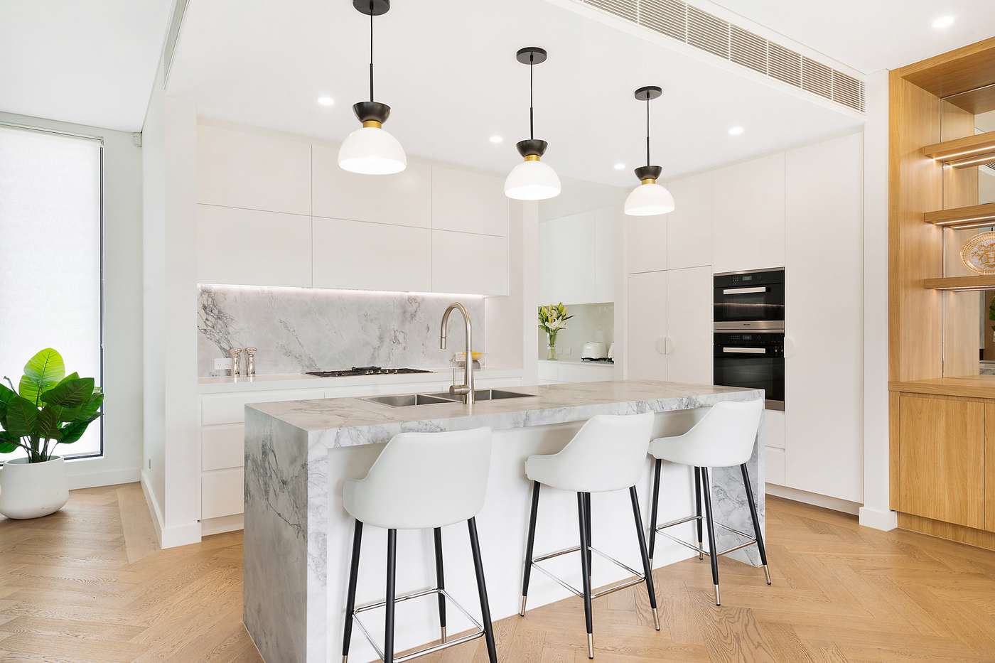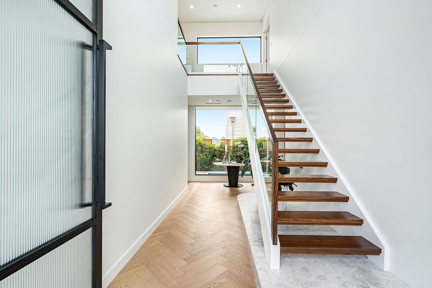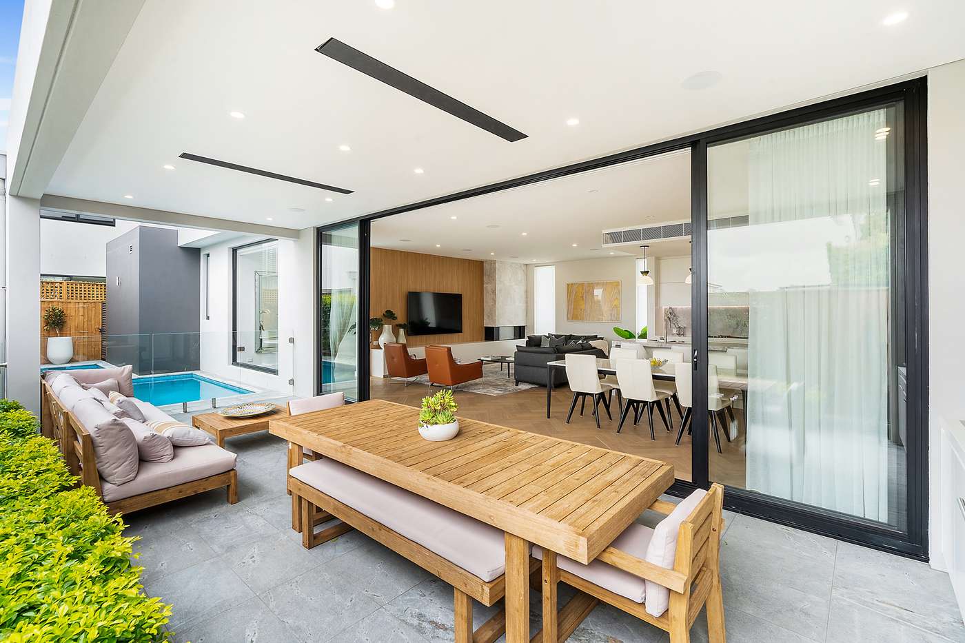 A statement in luxury, this architecturally designed double brick residence has been masterfully crafted to provide a first class living experience in Kogarah Bay. Boasting a rear north west aspect, it’s moments to buses, parks, beaches and village shops. – Striking modern façade with over 20 metres of garden frontage – Bright double height entry foyer features open rise staircase – Vast open living zone reveals custom joinery and gas fireplace – Expansive sliding doors open to a covered entertainers’ haven – Fixed barbecue, stunning gas heated pool bathed in sunlight – Stone topped kitchen offers walk-in pantry, Miele appliances – Generous bedrooms and master suite flow to bay view balconies – Exquisite master ensuite, main bathroom has freestanding bath – Guest w/c, herringbone timber floors, ducted air conditioning – CCTV/intercom, alarm, garage with Wi-Fi control/internal entry.